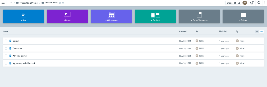 In this project I would only have copy to collate and create. I did this by collecting this in a whimsical folder, the name of each file is the title of each static page, apart from extract, this will be the copy of the index page.